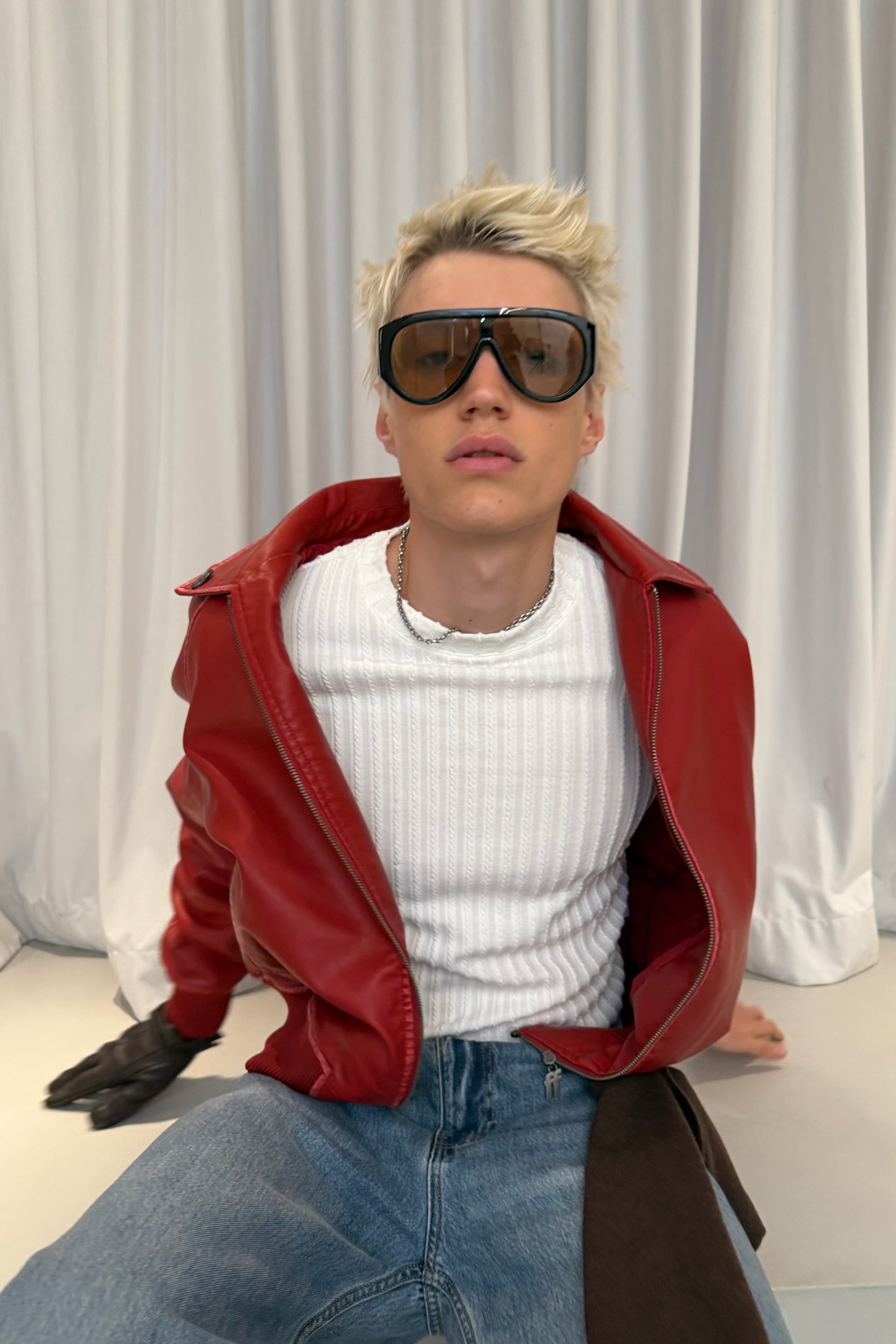 Nueva chaqueta roja cruda